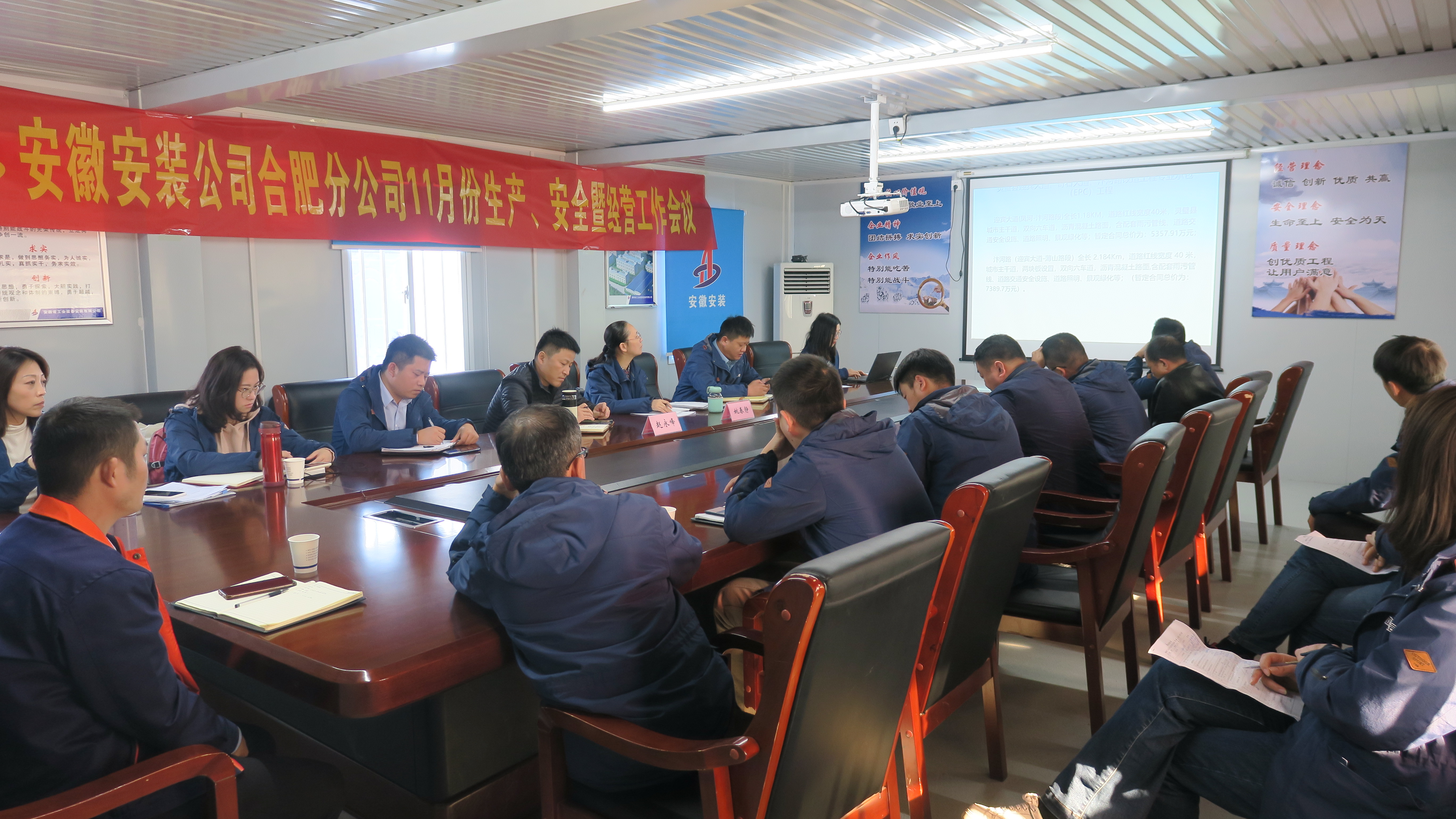 11月10日下午,合肥分公司在新宇藥業微生物藥物生產建設項目部召開了分公司11 月份生產、安全暨經營工作會議。分公司領導班子成員、所屬各項目經理、機關各部門負責人參會,會議由分公司副經理夏國祥主持。