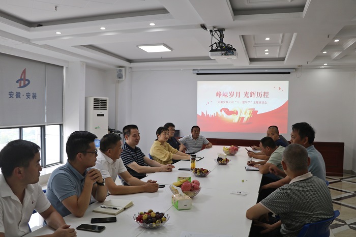 2021年8月1日是中國(guó)人民解放軍建軍94周年,8月2日,安徽安裝公司組織召開了“八一”建軍節(jié)主題座談會(huì)。座談會(huì)由公司工會(huì)副主席、人力資源部經(jīng)理王敏主持,黨委書記、董事長(zhǎng)胡六中出席,10名公司在職的退伍軍人參加了座談會(huì)。