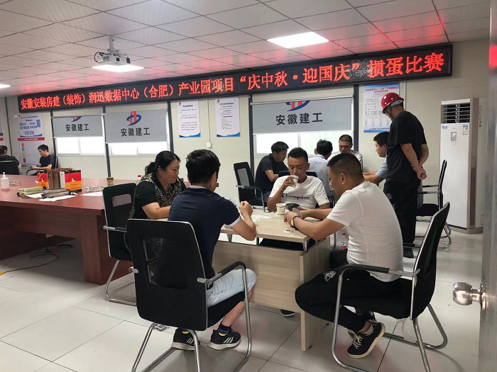 9月20日下午,房建(裝飾)分公司潤迅數據中心(合肥)產業園項目舉辦了“歡樂中秋·喜迎國慶”摜蛋比賽。比賽以抽簽的形式組隊,4人分為一組開始PK,采用淘汰制的方式進行,每輪比賽采用一局決勝。比賽中,選手們充分發揮“友誼第一,比賽第二”的體育精神,賽出了智慧,比出了水平。
