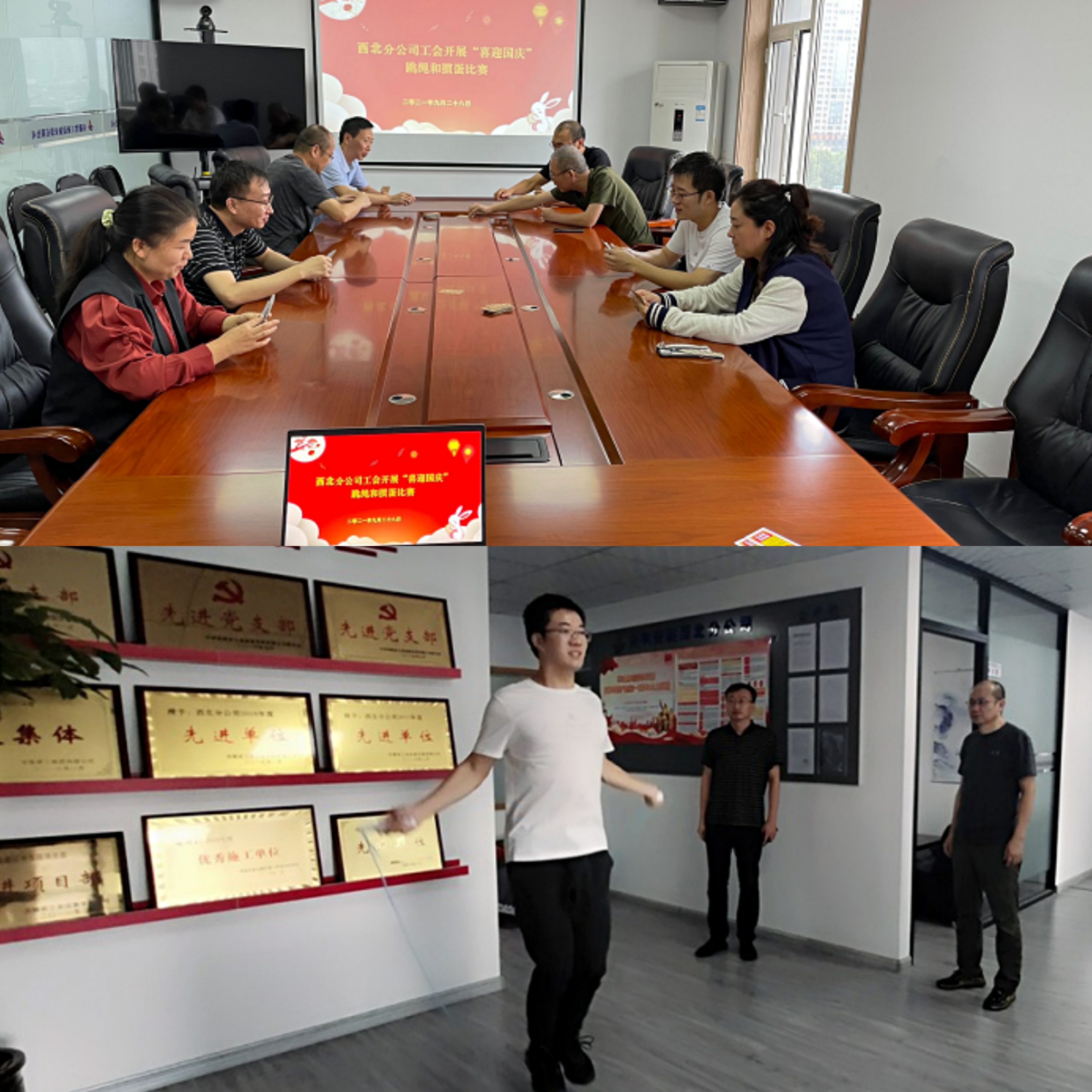 9月28日上午,西北分公司工會組織開展“喜迎國慶”跳繩和摜蛋比賽。跳繩活動現場氣氛熱烈,喝彩聲此起彼伏,摜蛋比賽大家圍成一桌,你一言我一語,各顯牌技?;顒拥拈_展能強化職工快樂工作、生活的意識,激發廣大職工以更加飽滿的熱情與斗志投入到今后的工作中去。