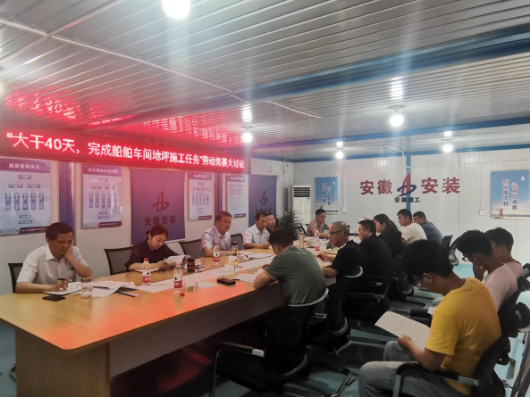 9月2日上午,安徽安裝蚌埠臨港智能制造產(chǎn)業(yè)園二期工程“大干40天,確保完成船舶車間地坪施工任務(wù)”勞動(dòng)競(jìng)賽主題大討論在項(xiàng)目部舉行。公司副總經(jīng)理高飛、趙伯平,紀(jì)委書(shū)記、工會(huì)主席李楊,工會(huì)副主席王敏,公司勞動(dòng)競(jìng)賽委員會(huì)相關(guān)職能部門負(fù)責(zé)人、蚌埠分公司班子成員、項(xiàng)目部員工共30余人參會(huì),會(huì)議由李楊主持。