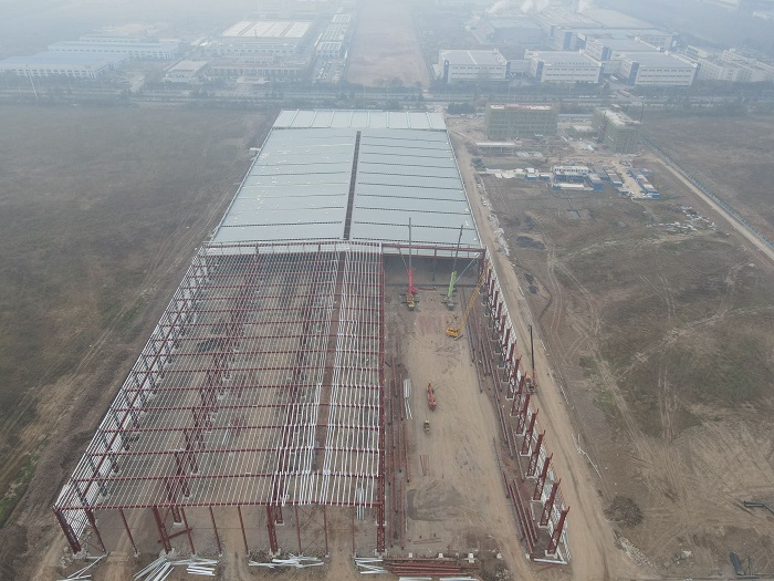 由合肥分公司承建的安徽建工智能鋼構(gòu)項(xiàng)目正在緊張施工中,現(xiàn)主體架構(gòu)已初現(xiàn)雛形。11月17日上午,項(xiàng)目部“50米跨屋面梁吊裝”工作正在進(jìn)行,公司總工程師吳繼成現(xiàn)場(chǎng)指導(dǎo)吊裝工作,并為第一榀屋面梁進(jìn)行掛紅儀式。公司總經(jīng)理助理、合肥分公司經(jīng)理、黨支部書(shū)記趙永峰,公司總工辦、安全部等相關(guān)部門(mén)負(fù)責(zé)同志參加。