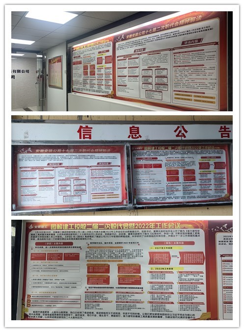 為統(tǒng)一思想,營造良好氛圍,分公司領(lǐng)導(dǎo)帶頭學(xué),黨支部利用支委會(huì)、機(jī)關(guān)(項(xiàng)目部)專題學(xué)習(xí)會(huì)、班子理論學(xué)習(xí)會(huì)、黨員活動(dòng)日以及下發(fā)會(huì)議精神圖解、張貼宣傳欄、深入基層一線宣講等多種形式,迅速掀起學(xué)習(xí)宣貫集團(tuán)二屆二次職代會(huì)暨2022年工作會(huì)議和公司十七屆二次職代會(huì)精神的熱潮。