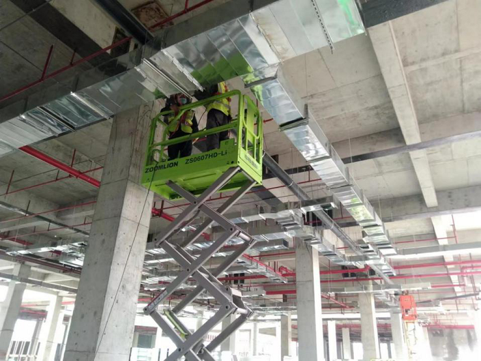 岳西恒太城項目五一期間加班加點開展風管安裝與內墻抹灰等各項工作