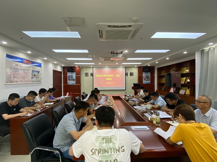 5月25日下午,蚌埠分公司組織召開2022年5月份生產、安全暨經營工作會議,分公司領導班子成員、部門負責人、各在建項目經理及工程管理部全體員工參會,會議由分公司副經理郭洋主持。