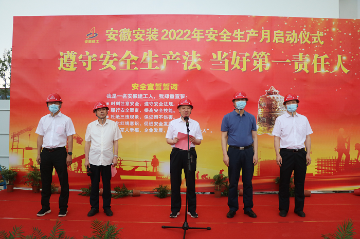 在全國第21個“安全生產(chǎn)月”活動到來之際,5月30日上午,安徽安裝公司2022年“安全生產(chǎn)月”啟動儀式在年配套1000萬臺新能源汽車及年產(chǎn)2億臺制冷空調(diào)壓縮機關鍵性能件制造基地項目舉行。公司黨委書記、董事長胡六中,紀委書記、工會主席李楊,副總經(jīng)理趙伯平,總工程師吳繼成及機關各部門、各分公司代表參加了本次活動。