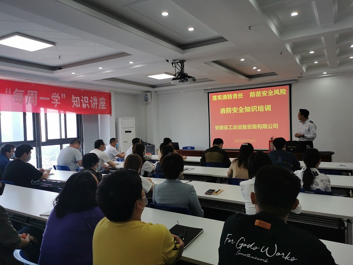 為了普及消防安全教育,進一步加強全體員工消防安全意識,提高自我防范和自救能力,5月6日上午,安徽安裝公司邀請安徽政安防火教育中心教官為公司職工進行了一場安全知識技能培訓。公司副總經理李原應邀出席本次培訓,公司機關各部門,各分公司安全員共40余名職工參加了培訓。