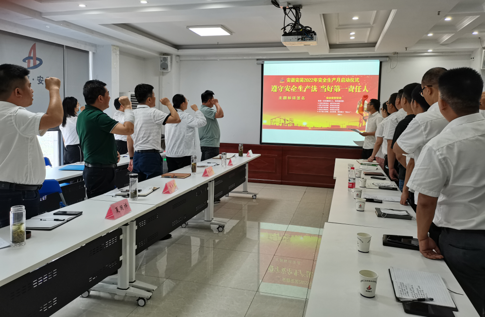 “我是一名安徽建工人,我鄭重宣誓,時(shí)刻注意安全,遵守安全法規(guī);履行安全職責(zé),提高安全技能……”伴隨著莊嚴(yán)響亮的宣誓后,大家熱情高漲,踴躍地簽上自己的名字。至此,分公司正式拉開了“安全生產(chǎn)月”活動(dòng)的序幕。