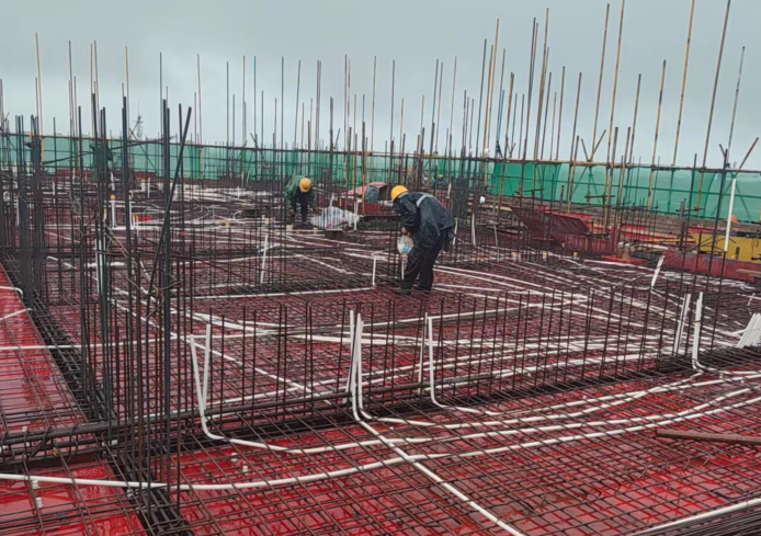圖為舒城青墩小區(qū)項(xiàng)目高層住宅及地庫(kù)的水電及消防工程安裝工程正在搶抓管線預(yù)埋。
