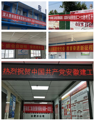 分公司黨支部還結(jié)合分公司班子理論(擴(kuò)大)學(xué)習(xí)會、黨小組(擴(kuò)大)學(xué)習(xí)會、宣傳櫥窗、橫幅標(biāo)語、LED屏等多種形式,大力營造學(xué)習(xí)好、宣傳好、貫徹好建工控股第一次黨代會精神的濃厚氛圍,確保大會精神入耳、入腦、入心。