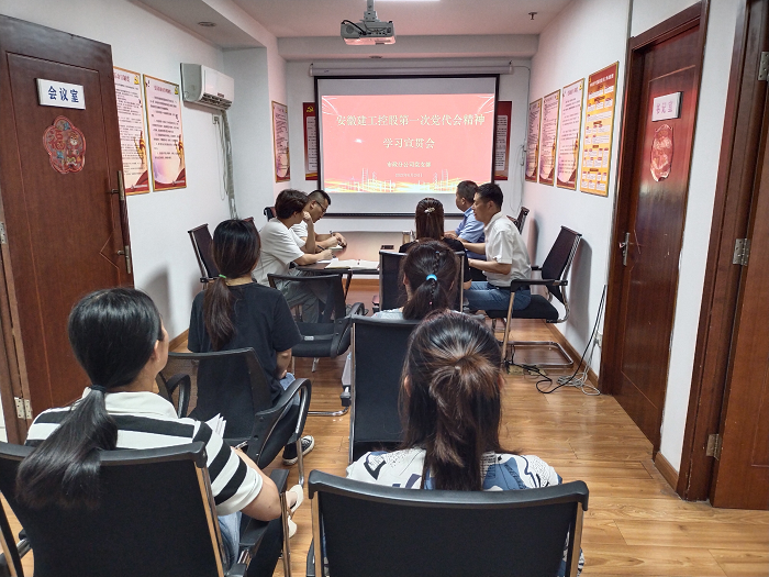6月24日下午,市政分公司黨支部在分公司會議室組織召開安徽建工控股第一次黨代會精神學習宣貫會,集中學習宣貫建工控股第一次黨代會精神,會議以現場加視頻方式召開,分公司全體員工參加會議,會議由分公司黨支部書記胡迎東主持。