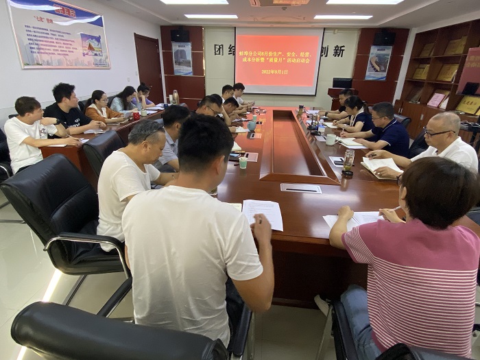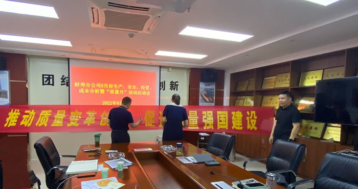 9月1日下午,蚌埠分公司召開8月份生產(chǎn)、安全、經(jīng)營、成本分析暨“質(zhì)量月”活動啟動會,分公司領(lǐng)導班子成員、部門負責人及各項目經(jīng)理等參會。