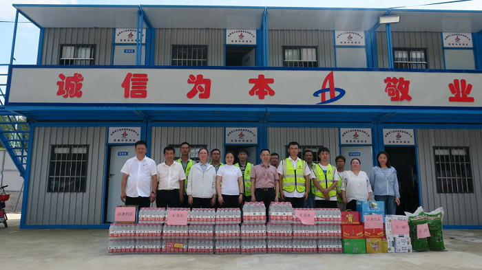 公司工會先后來到岳西中學建設項目(一期)安裝工程項目、中石化安慶分公司煉油轉(zhuǎn)化工200噸/小時污水汽提裝置項目、舒城第一中學遷建項目、四水廠DN1800、DN1400供水管道遷建工程管網(wǎng)項目、花園大道(徽州大道-包河大道)道路工程項目、定遠壹石通化學科技廠房項目、凱盛科技超薄柔性玻璃(UTG)二期5#、6#車間及配套設施工程項目,給廣大一線職工送去白糖、綠豆、礦泉水、飲料、藥品等防暑降溫物品,將工會組織的關(guān)心關(guān)愛傳遞給項目職工。