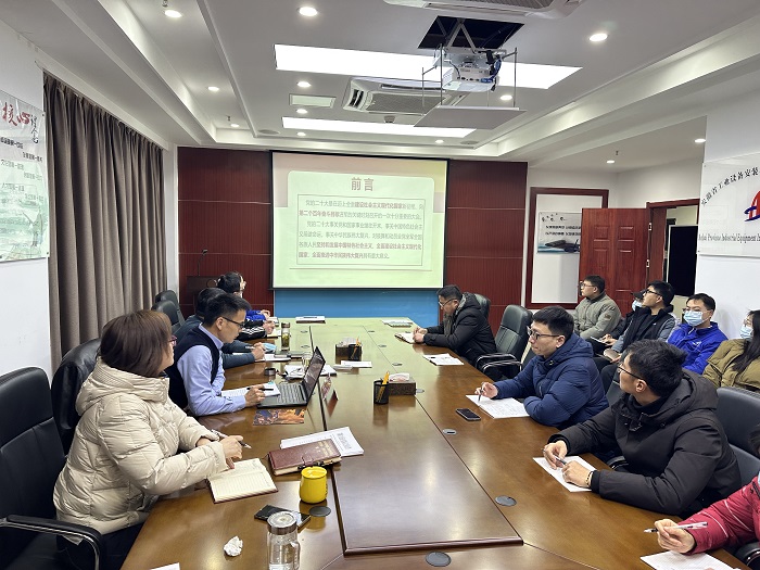 1月11日下午,安徽安裝公司黨委副書記、副總經理周正平赴安慶分公司開展黨的二十大精神宣講,分公司全體員工參加宣講會。