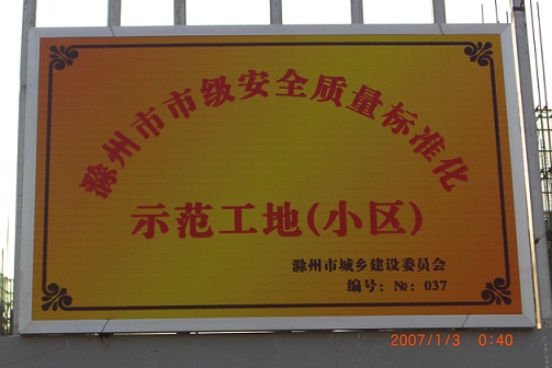 2010年12月31日,滁州分公司承建的皖投水岸星城一期三標段工程成功創建滁州市安全質量標準化示范工地。