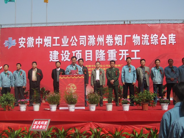 4月18日上午,陽光明媚。由公司滁州分公司承建的滁州卷煙廠物流綜合庫工程開工典禮隆重舉行。滁州卷煙廠主要領(lǐng)導(dǎo)及當(dāng)?shù)刂鞴懿块T負(fù)責(zé)人蒞臨現(xiàn)場,公司總經(jīng)理王軍邦、黨委書記戴樹明應(yīng)邀出席儀式,滁州分公司全體管理人員出席慶典,戴書記代表施工單位祝賀工程隆重開工。滁州卷煙廠物流工程的順利開工,標(biāo)志著公司與安徽中煙的良好合作關(guān)系得到進(jìn)一步延續(xù)和鞏固。