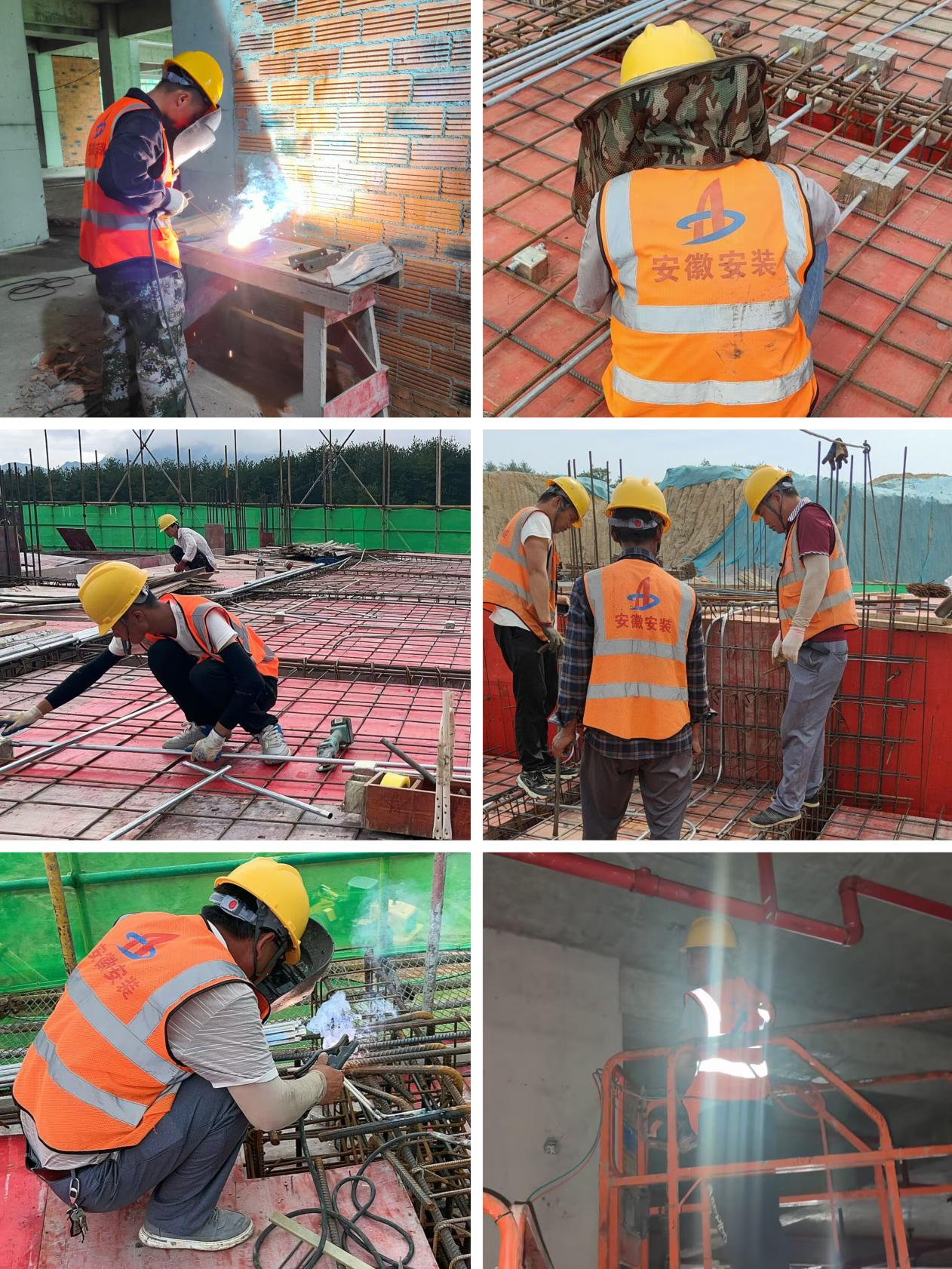 岳西中學(xué)項(xiàng)目現(xiàn)場(chǎng)正在進(jìn)行埋地排水管道、消防水平管道安裝、樓層板面線管預(yù)埋、防雷焊接