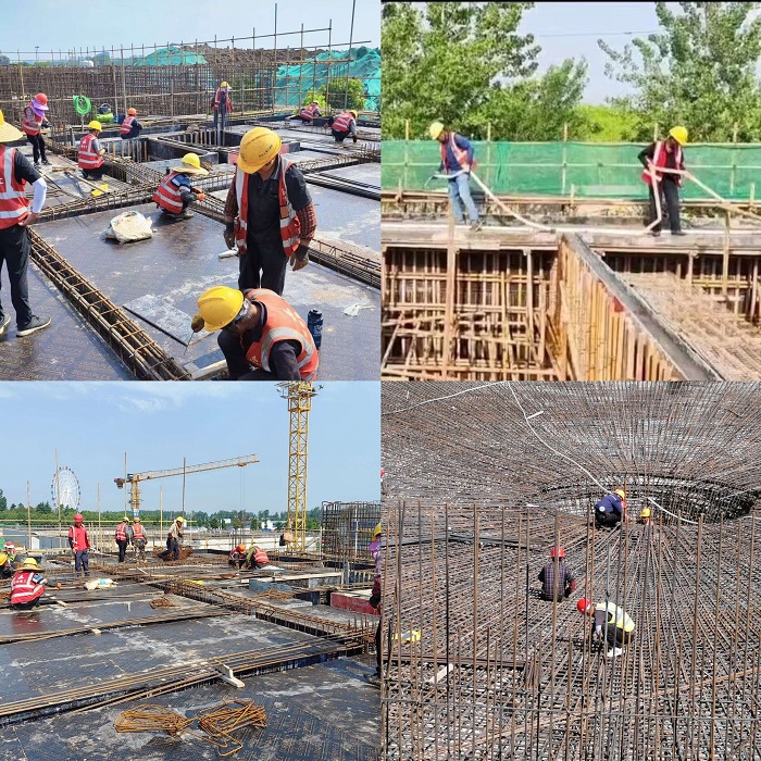 炎炎夏日,熱浪襲人,高溫炙烤下的阜南縣城南污水處理廠項目部施工現場確是一片熱火朝天的繁忙景象,全體參建人員戰高溫斗酷暑,堅守在自己的崗位,正全力以赴、爭分奪秒追趕進度,確保合同工期按時完成。