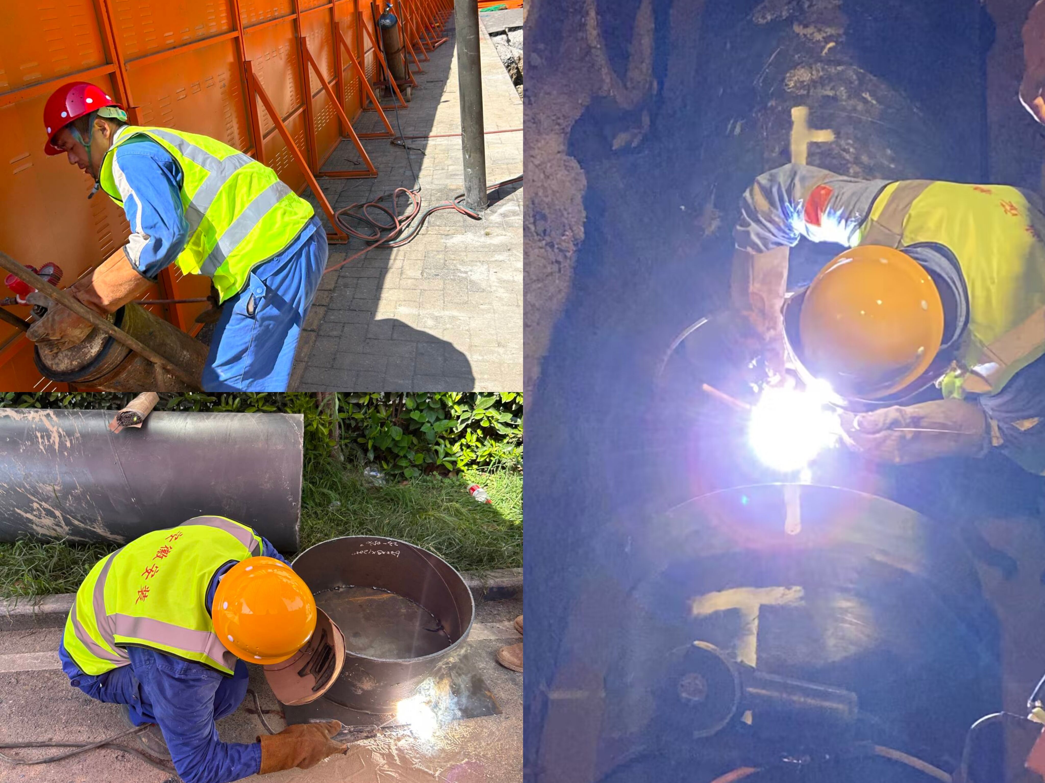 圖為:蕪湖路蒸汽管網改造工程乙炔瓶搬運、套管焊接及直埋蒸汽保溫管道焊接施工
