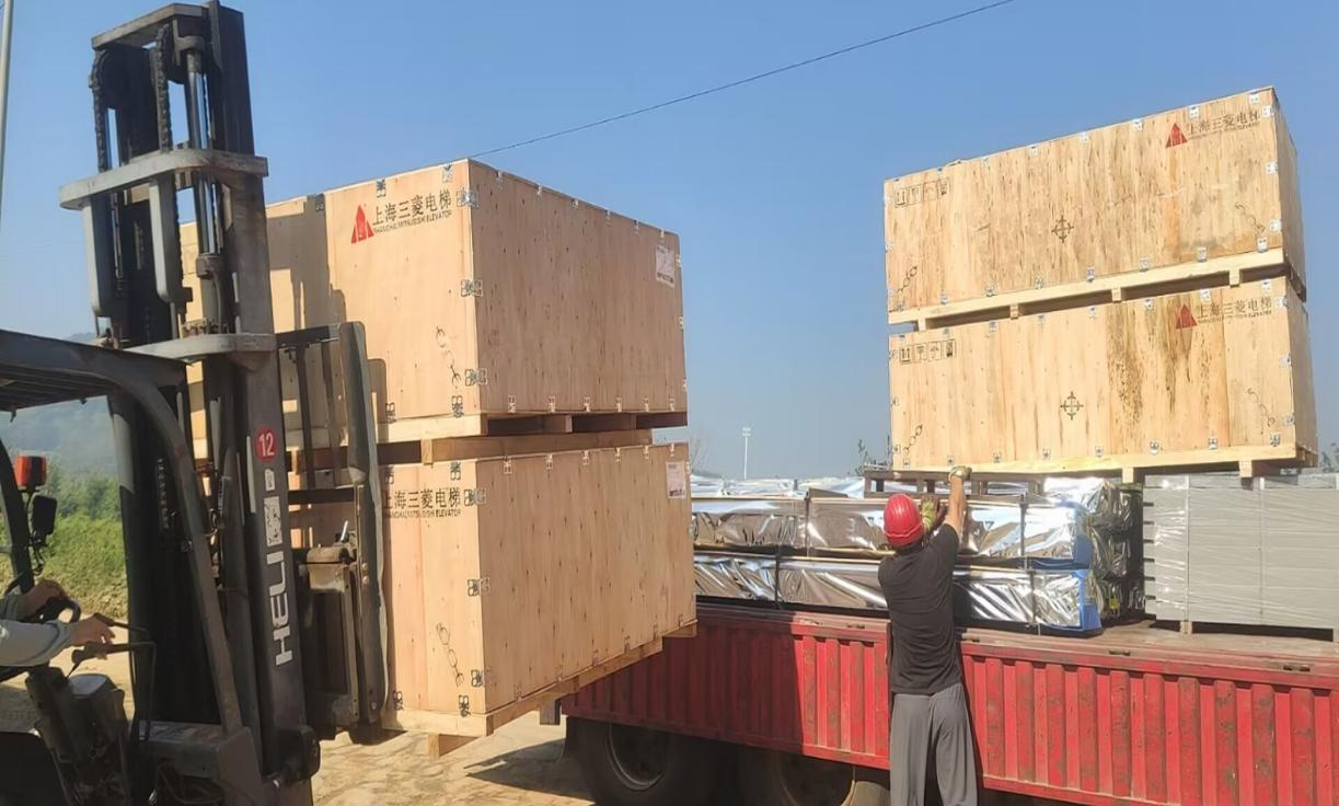 天長市安徽恒大湖山半島電梯安裝工程項目正在卸貨