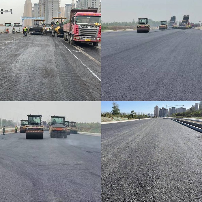 為了確保第一層瀝青安全高效攤鋪,項(xiàng)目部超前謀劃、科學(xué)組織、精心安排,圍繞瀝青攤鋪施工工藝、質(zhì)量控制要點(diǎn)、機(jī)械設(shè)備安全操作規(guī)程及現(xiàn)場(chǎng)施工注意事項(xiàng)等方面進(jìn)行詳細(xì)的安全技術(shù)交底。攤鋪過(guò)程中,項(xiàng)目部嚴(yán)格控制瀝青混合料運(yùn)輸、瀝青料攤鋪溫度、松鋪系數(shù)和碾壓工藝等工序,只見(jiàn)現(xiàn)場(chǎng)機(jī)械隆隆作響,讓這條1.25公里的筆直“巨龍”漸漸穿上黑色“鱗甲”;經(jīng)過(guò)近15個(gè)小時(shí)奮戰(zhàn),順利完成瀝青第一層瀝青攤鋪任務(wù)。