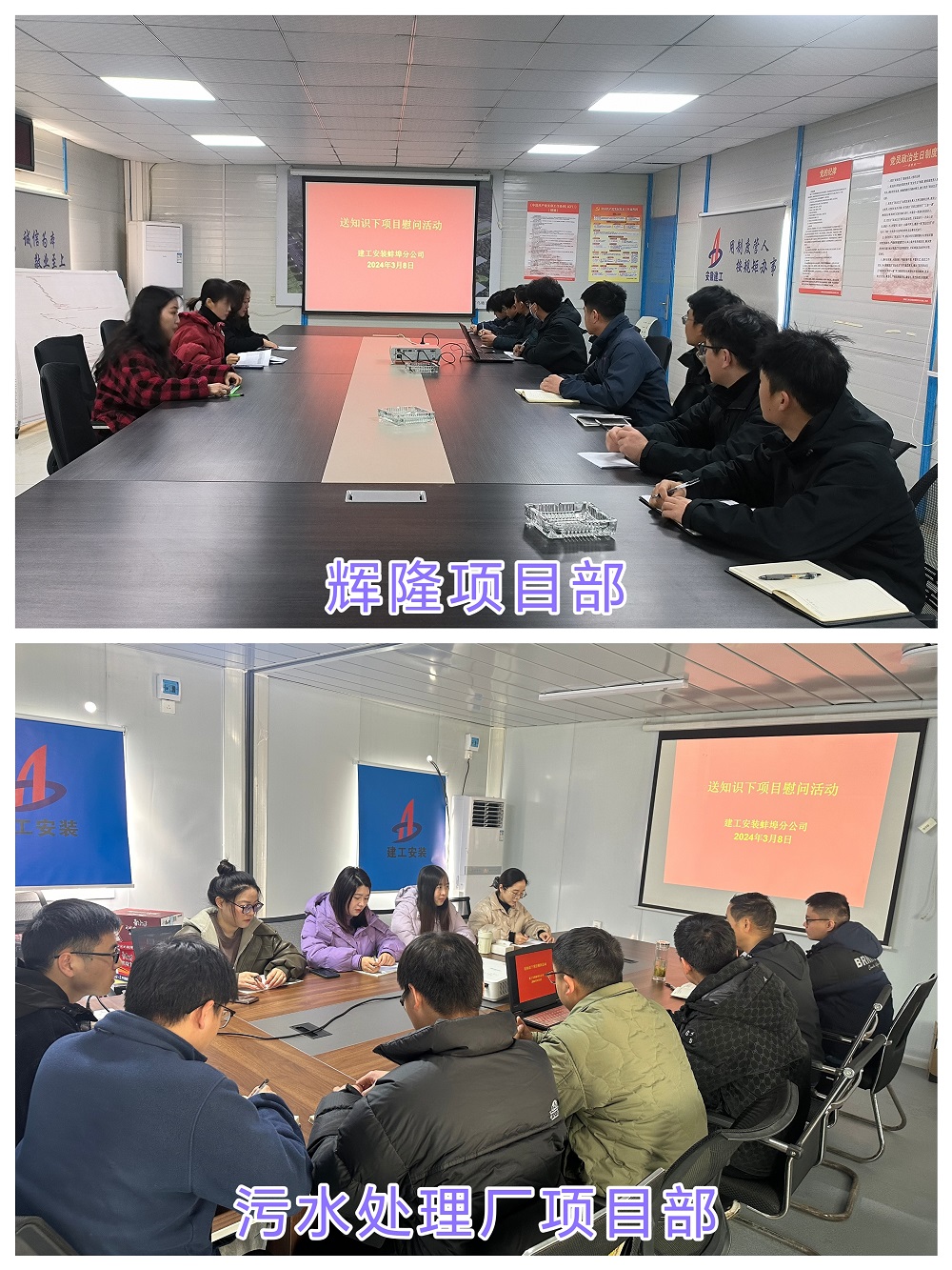 又是一年春暖花開時,迎來了第114個三八國際婦女節,為慶祝節日,更好地展現安裝女職工的巾幗風貌,3月8日,蚌埠分公司女職工分別赴輝隆項目部、污水處理廠項目部開展“送知識下項目”活動。