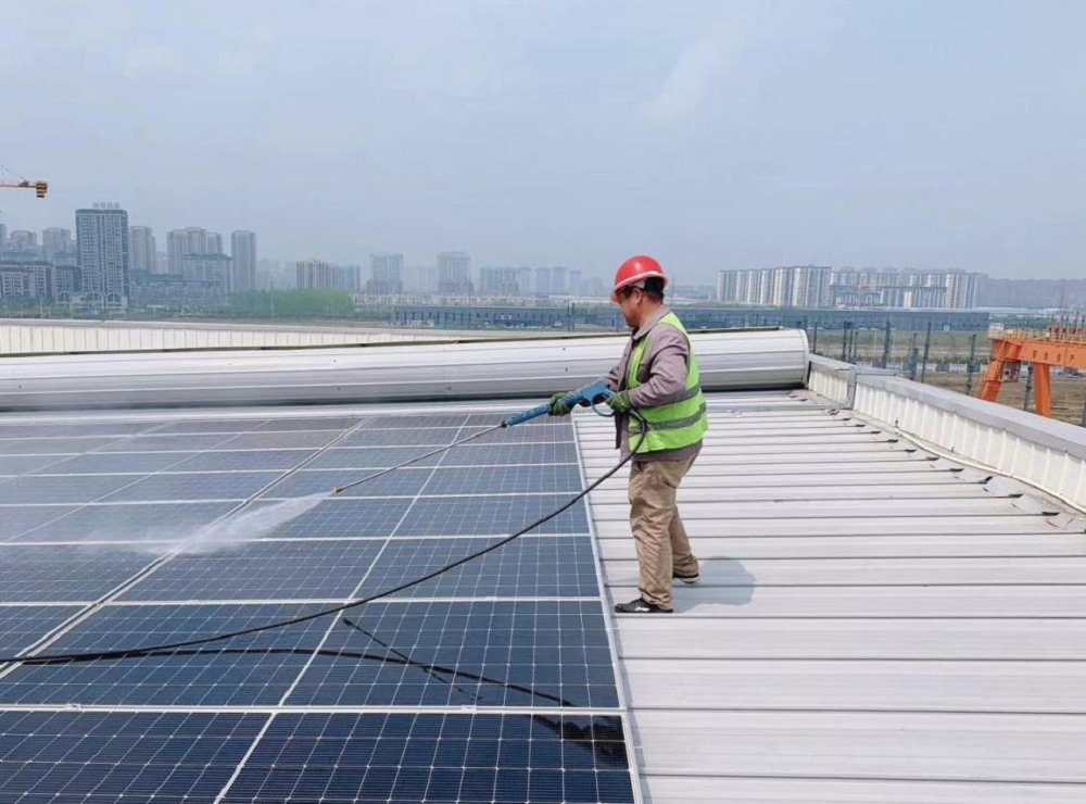 “灰層遮擋了光伏板的主體,而此刻我手中的高壓水槍,猶如一把犀利的掃帚,能夠快速清除板面的泥土和污垢,既節省了人力和時間,又進一步提高了發電效益。清洗后的光伏板,仿佛獲得了源源不斷的動力,不知疲倦地輸出著清潔能源。”