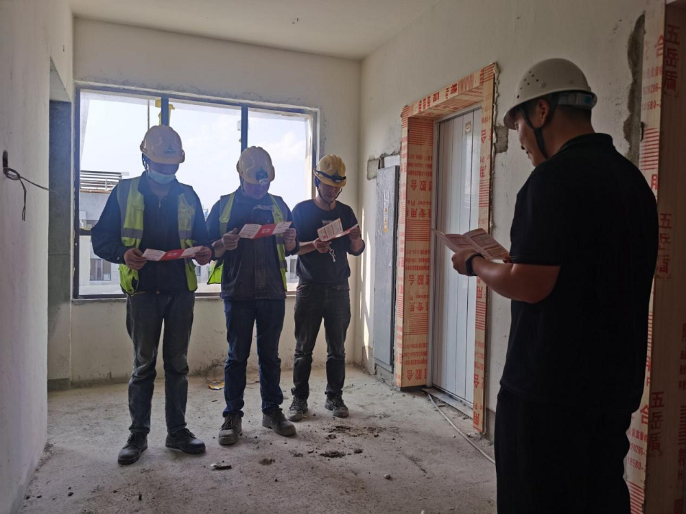 廬陽區(qū)清瀾苑項(xiàng)目現(xiàn)場安裝人員正在進(jìn)行每日安全教育