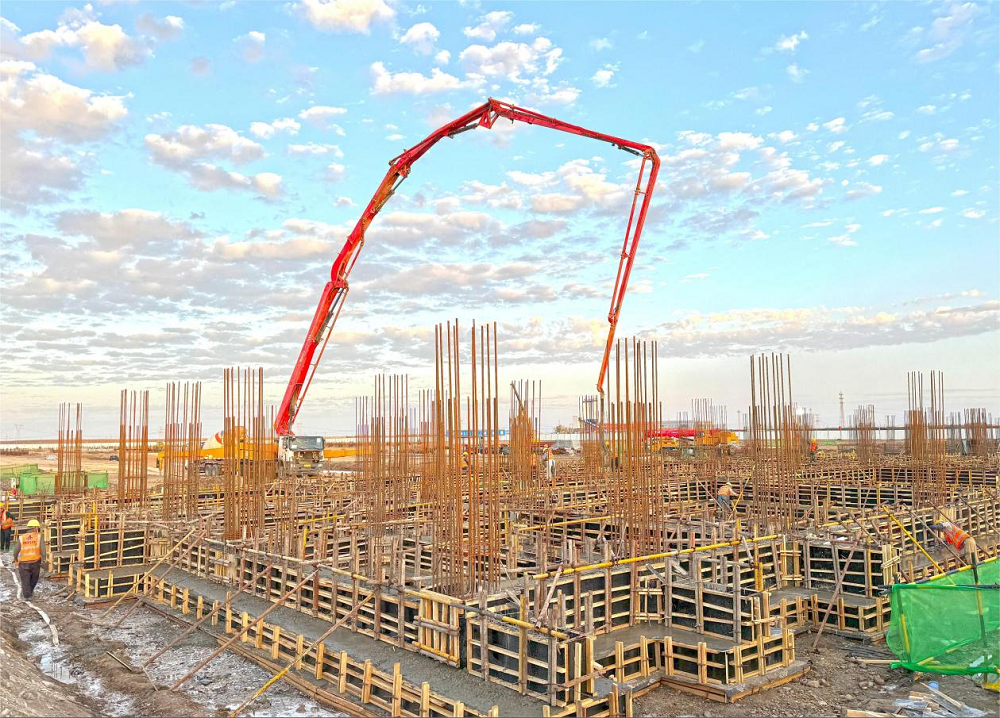 該項目施工現場人頭攢動,機械轟鳴,駐場技術人員頭頂烈日、靠前指揮,施工工人往來穿梭,或支設模板,或綁扎鋼筋,與夏競速,“激戰”正酣。項目工期緊任務重,為搶進度、嚴安全、保工期、抓質量,項目部嚴格制定施工進度計劃,統籌安排施工人、材、機,合理高效進場施工作業,目前項目正在進行變電所及廠房的基礎工程。