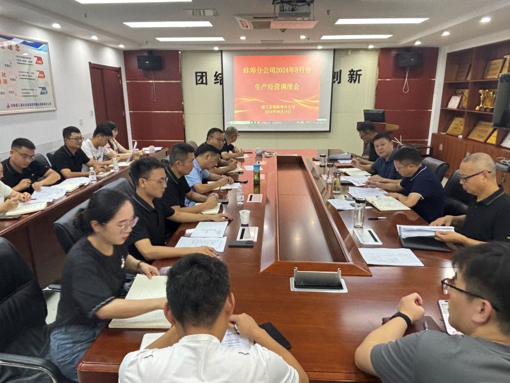8月14日上午,蚌埠分公司組織召開8月份生產(chǎn)經(jīng)營調(diào)度會,分公司領導班子成員、所屬各項目部、機關各部門負責人及工程管理部全體員工參加會議,會議由分公司副經(jīng)理張斌主持。