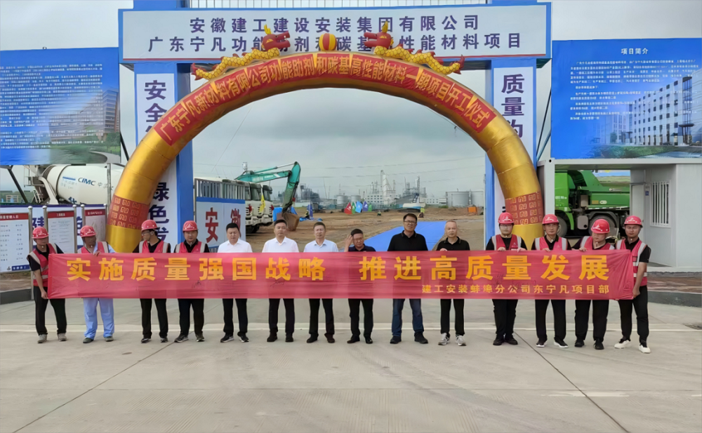 建工安裝黨委書(shū)記、董事長(zhǎng)朱珍宏出席建工安裝蚌埠分公司廣東寧凡新材料有限公司功能助劑和碳基高性能材料一期項(xiàng)目質(zhì)量月活動(dòng)啟動(dòng)儀式