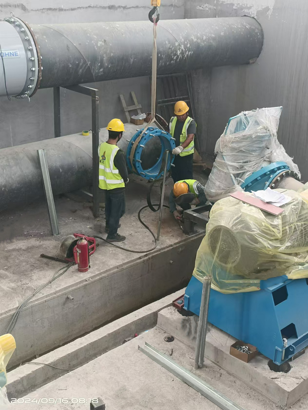 圖為安裝鼓風機管道和閥門配件