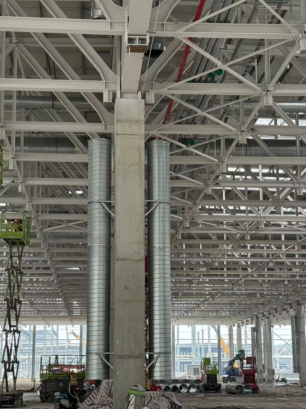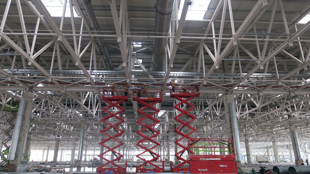 在建工安裝合肥經開區臨湖智能制造產業園項目現場,項目部管理人員及水電班組、通風班組、消防班組、虹吸雨水班組施工人員夜以繼日加班加點搶抓進度。30名項目管理人員,226名施工人員,96輛登高機械,采取“白加黑” 、“5+2”模式施工作業,確保各區域各專業施工生產穩步推進。 目前正在進行車間一通風系統、雨水系統、消防系統,壓縮空氣與循環水系統等安裝作業,站房一同步開展管線預埋與預制工作。本周已完成車間一風管安裝約4200平方米,雨水管道安裝約1100米,消防管道安裝約590米,橋架安裝約600米。