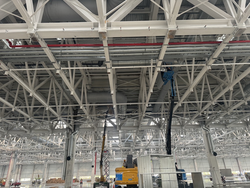 目前,“完成首開區”節點目標已完成,總產值完成7000萬。本周現場施工人數約450人,升降車、登高車等機械約180臺。電氣班組完成橋架安裝12000米,燈具安裝3000盞,電線安裝70000米,電氣配管安裝15000米;給排水班組完成管道安裝21000米;暖通班組完成風管制作與安裝45000平方米;消防班組完成消防管道安裝8500米。