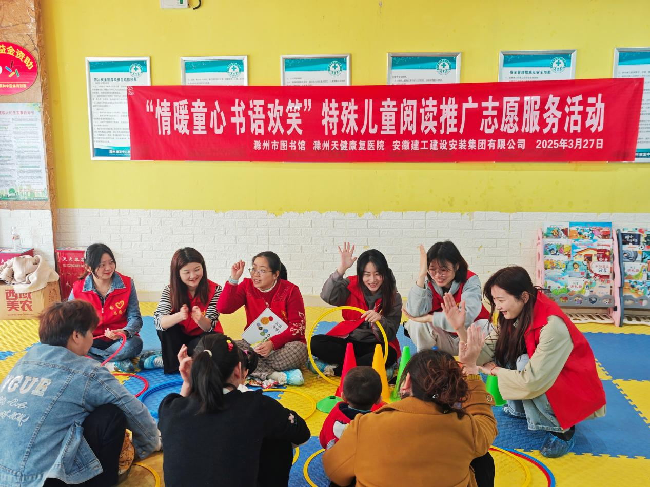 為傳遞社會(huì)關(guān)懷,助力特殊兒童健康成長,3月27日,建工安裝團(tuán)委聯(lián)合滁州市圖書館組織團(tuán)員青年志愿者走進(jìn)滁州康復(fù)醫(yī)院,開展“情暖童心 書語歡笑”特殊兒童閱讀推廣志愿服務(wù)活動(dòng)。志愿者為孩子們送去牛奶、餅干、繪本圖書等愛心物資,用溫暖陪伴為特殊兒童編織美好記憶,用愛心點(diǎn)亮特殊兒童成長路。