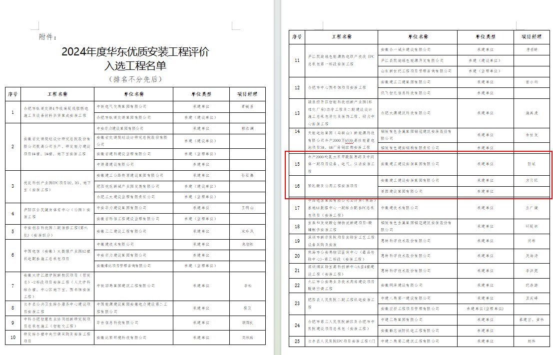 近日,2024年度華東優(yōu)質(zhì)安裝工程評價入選工程名單公布。建工安裝蚌埠分公司承建的輝隆年產(chǎn)2000噸氯蟲苯甲酰胺原藥及中間體一期項目設(shè)備、電氣、儀表安裝工程成功入選。