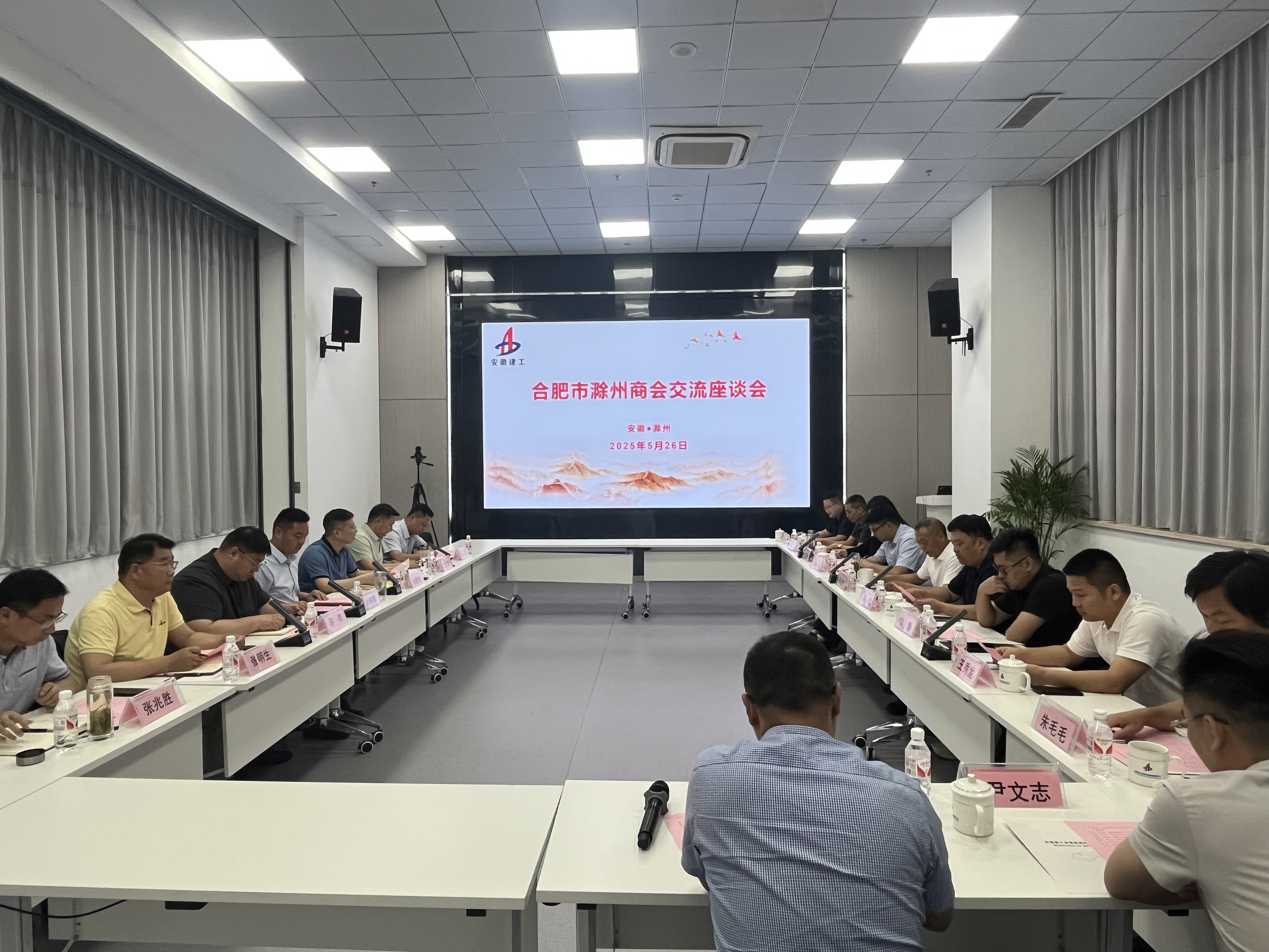 合肥市滁州商會輪值會長單凱、常務副會長王亞瓊、各副會長、常務秘書長及金鵬控股部門負責同志,建工安裝領導劉曉剛、費廣清及建工集團滁州區域有關單位負責同志參加座談。