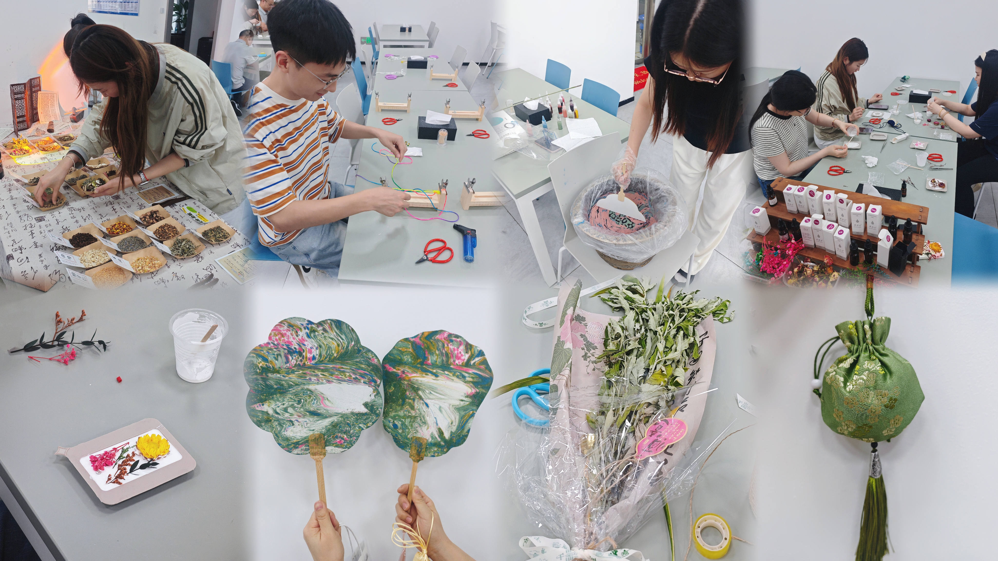 活動現(xiàn)場,五彩繩、香囊、艾草花束、漆扇、香牌等豐富多樣的手工項(xiàng)目精彩紛呈,吸引了眾多職工熱情參與。大家相互交流與合作,親手制作獨(dú)具特色的端午手工藝品,感受著傳統(tǒng)文化的深厚底蘊(yùn)。