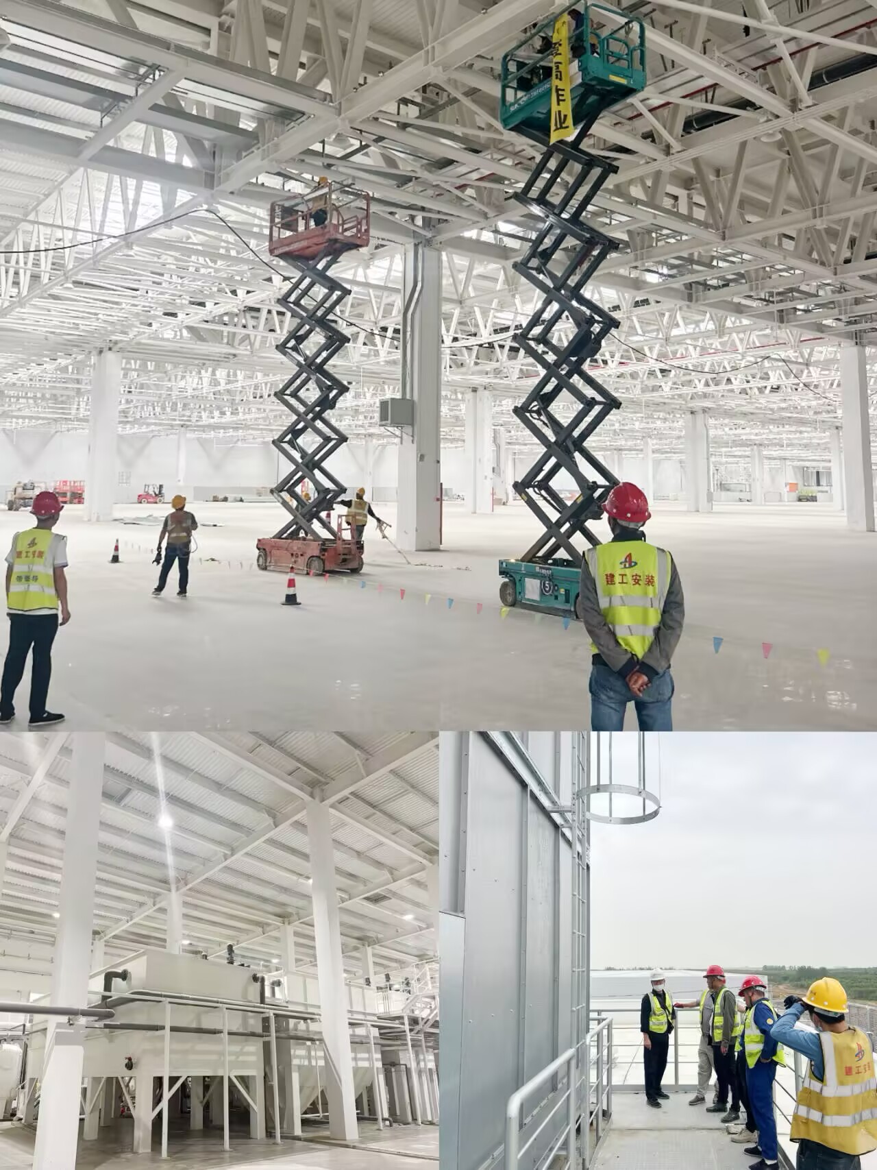 走進項目施工現場,起重機揮動著粗壯的鋼鐵臂膀劃破天際,將一段段鋼梁精準的吊裝至安裝位,曲臂車托舉著工人將鋼構件嵌入到預定位置,保障高空作業人員的生命安全。這是力量與技術的二重奏,更是安全與效率的完美平衡,一幅現代工業建筑的壯美畫卷正徐徐展開。