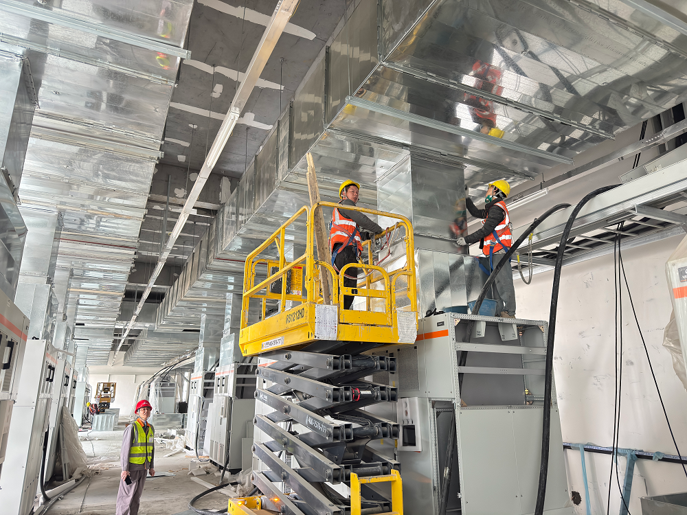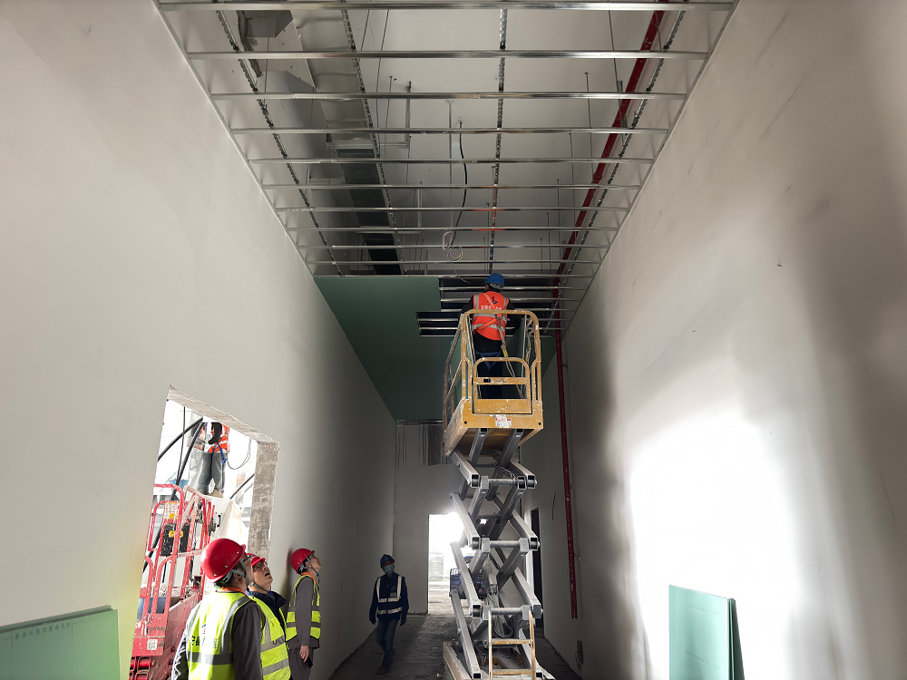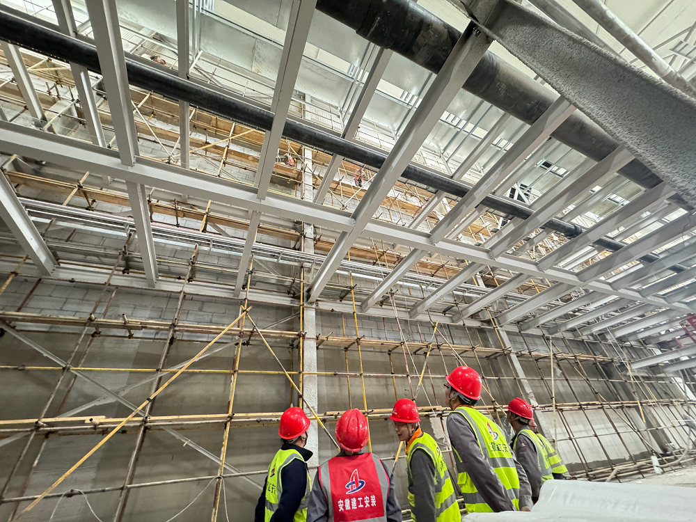 青海高原,氣候惡劣,環(huán)境艱苦,高寒缺氧,但這些困難并沒有阻擋項目部全體成員奮斗的步伐。施工現(xiàn)場,機器轟鳴聲此起彼伏,工人們頭戴安全帽,身系安全繩,操作著各種設(shè)備,熟練地進行著防水卷材敷設(shè)、吊頂板安裝、鋼筋綁扎、外墻抹灰、風(fēng)管安裝等作業(yè),每個環(huán)節(jié)都緊張有序,環(huán)環(huán)相扣。項目管理人員穿梭在各個施工點,緊盯現(xiàn)場安全與質(zhì)量,及時協(xié)調(diào)解決施工中遇到的問題,他們?nèi)硇牡赝度氲焦ぷ髦校脤I(yè)的素養(yǎng)和嚴(yán)謹(jǐn)?shù)膽B(tài)度為項目建設(shè)保駕護航。