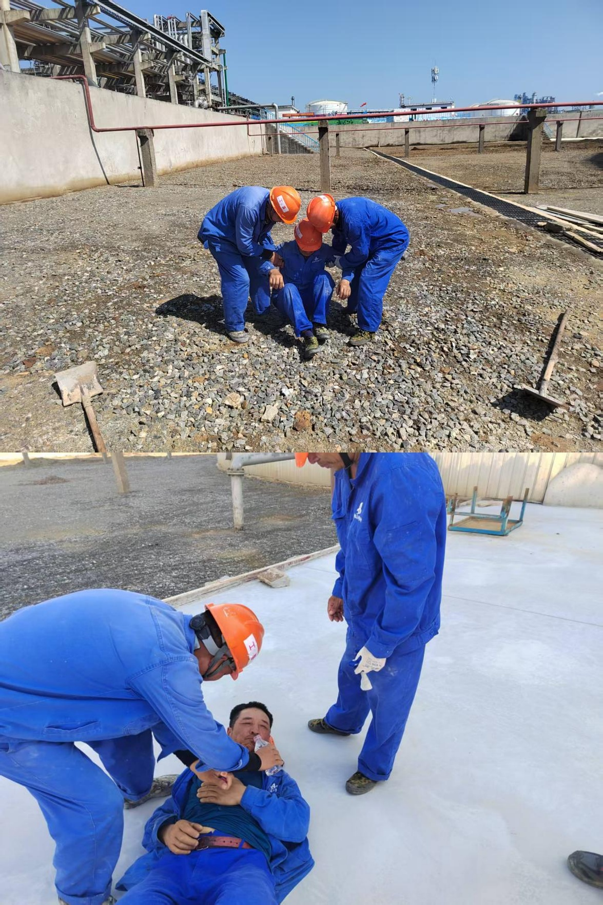 為進一步提升應急處置能力,安慶石化儲運部北山罐區地坪防滲項目現場開展了中暑應急演練。演練模擬戶外作業人員突然暈倒的緊急場景,指揮參演人員分工協作,有序開展現場急救與送醫治療。整個演練過程僅用時30 分鐘,便高效完成。演練結束后,應急演練領導小組立即組織總結會議,各小組匯報情況,安全負責人總結不足,為后續應急工作積累了寶貴經驗。